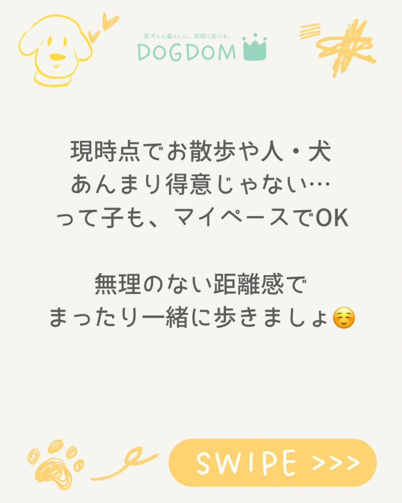 現時点でお散歩や人・犬、あんまり得意じゃない…って子も、マイペースでOK🙆🏻‍♀️