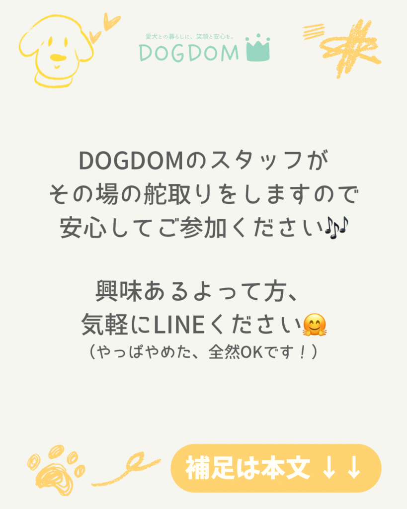 DOGDOMのスタッフがその場の舵取りをしますので、安心してご参加ください♪♪