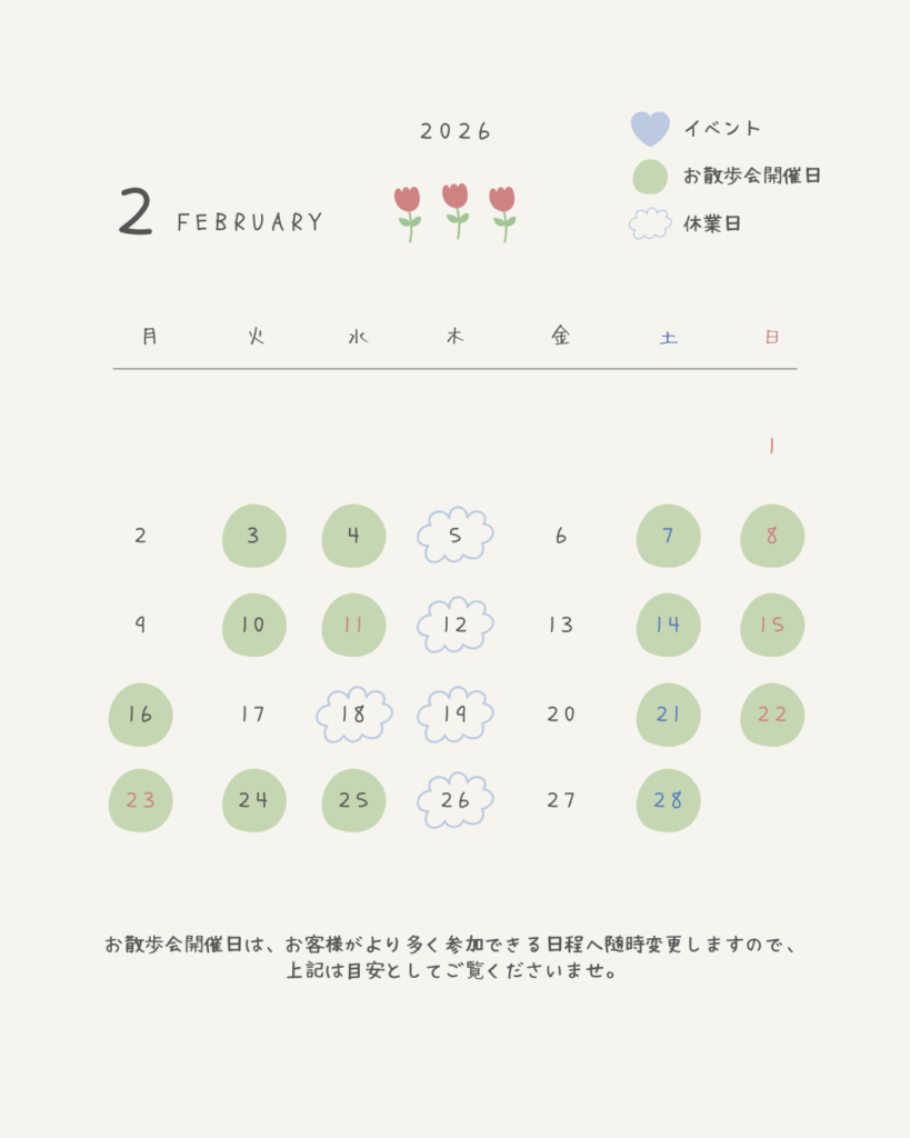屋外レッスン、お散歩会等